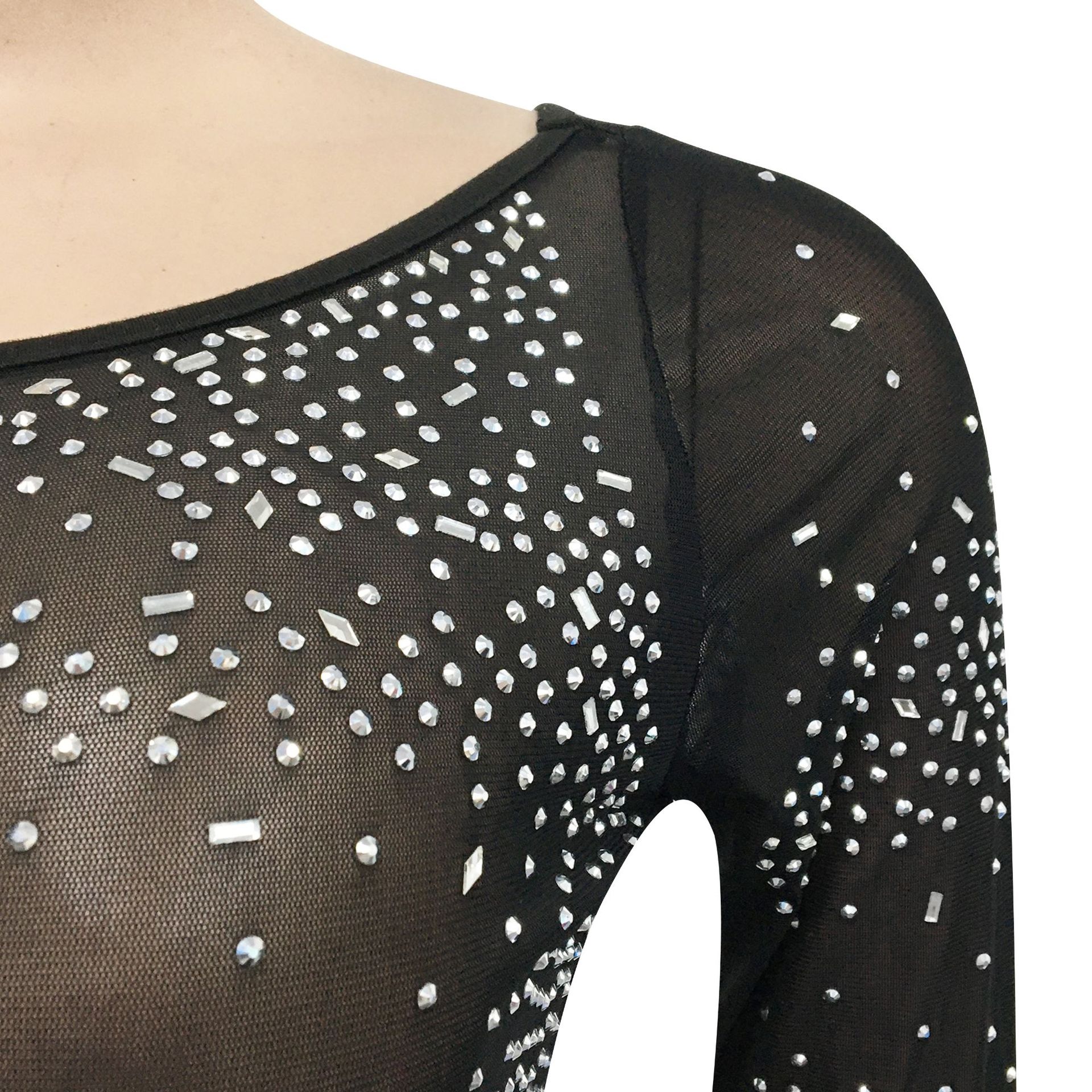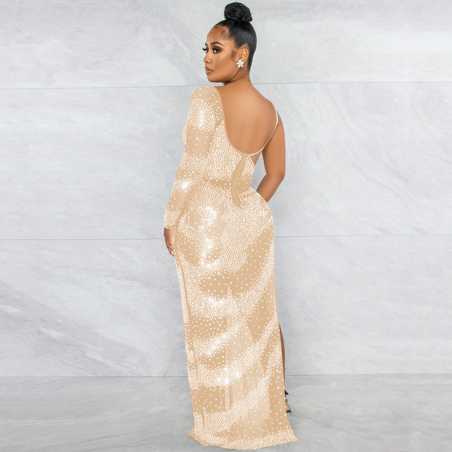 Fashion Sexy Nightclub Rhinestone Single Long Sleeve Irregular Slit Maxi Dress